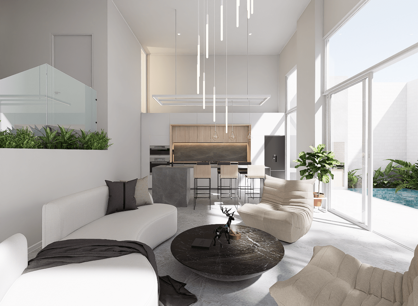Una vivienda en pendiente en un lote sin retiros ni parques cercanos. Proyectada para experimentar sensaciones de refugio y acojo gracias a un espacio fundamental, el jardín interior; este espacio rodea el área social y hacia él se dirigen las principales vistas. Las habitaciones se reconocen por los volúmenes sobresalientes que ganan área hacia la calle.